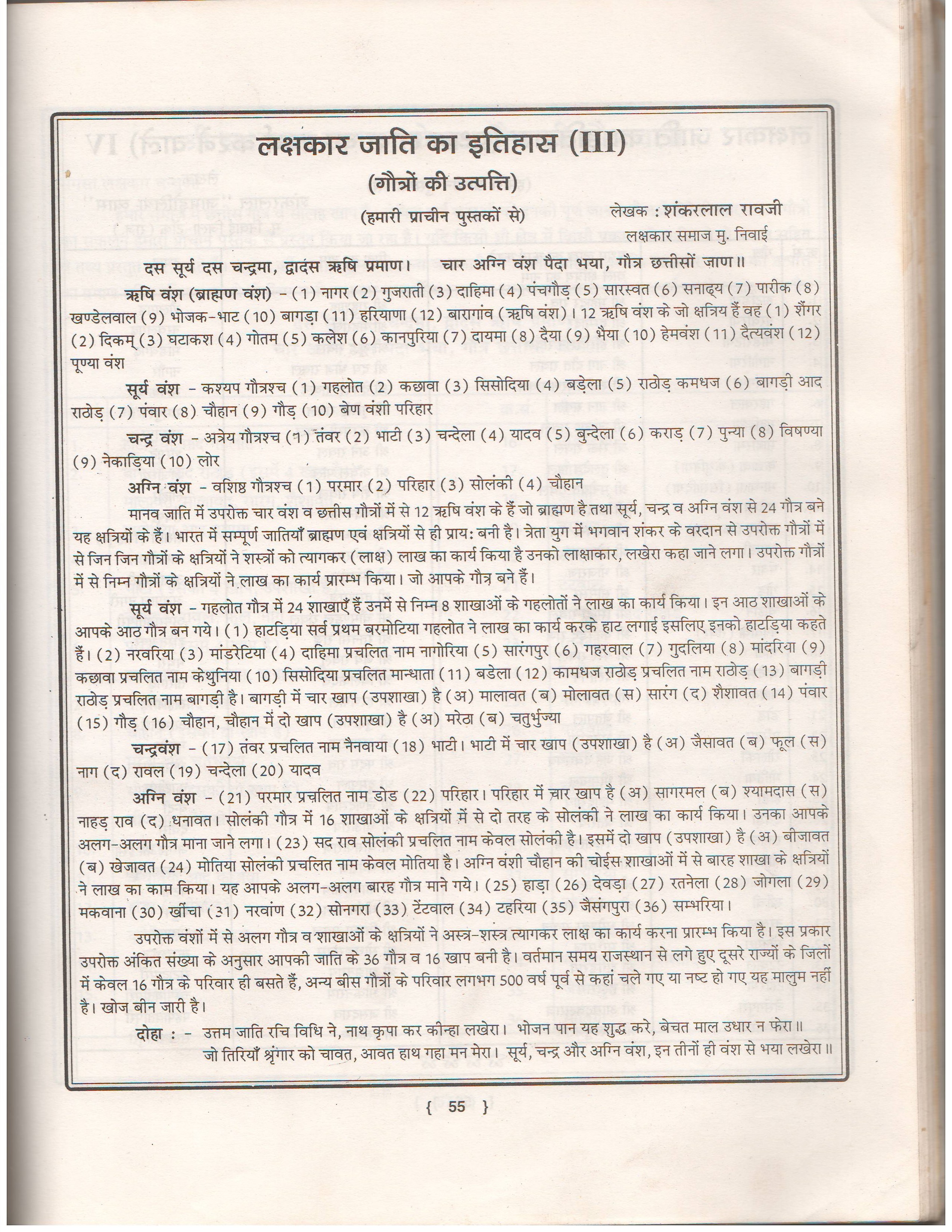 लखेरा जाति का इतिहास इस जाति की उत्पत्ति के बारे में अनेक मान्यताएं हैं, जिसमें से कुछ प्रचलित मान्यताओं का उल्लेख हम नीचे कर रहे हैं. R.V. Russel ने अपनी पुस्तक ‘The Tribes and Castes of the Central Provinces of India’ में इस जाति की उत्पत्ति के बारे में निम्न बातों का उल्लेख किया है-