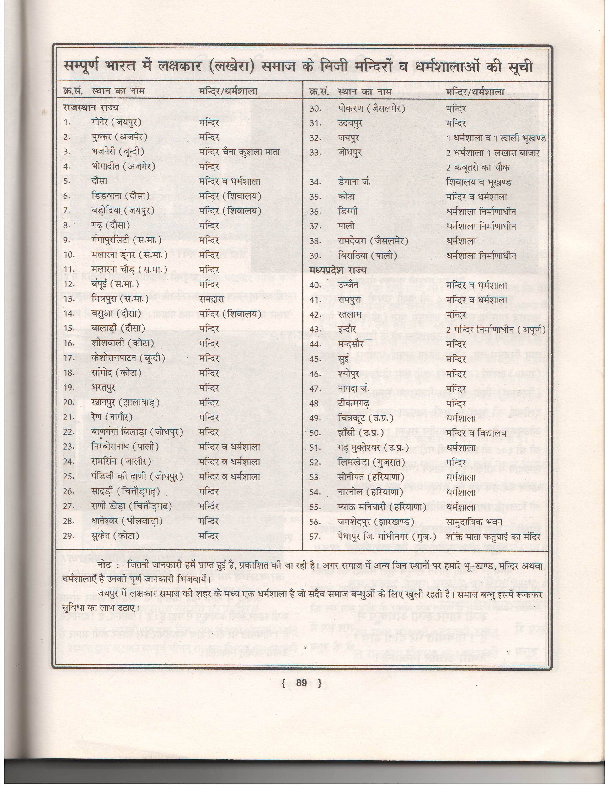 तीसरी मान्यता: एक अन्य मान्यता के अनुसार, भगवान कृष्ण ने इन्हें गोपियों और ग्वालिनों के लिए चूड़ियां बनाने के लिए उत्पन्न किया था. यह जाति कचेरा और पटवा समुदाय से निकटता से जुड़ा हुआ है. कुछ स्थानों पर इस जाति की तुलना पटवा समुदाय से की जाती है. मध्य प्रदेश के कुछ इलाकों में पटवा और लखेरा के बीच ज्यादा अंतर नहीं माना जाता. Census Report of North-Western provinces (1891) में उल्लेख किया गया है कि-“इस समुदाय के लोगों का मानना है कि पटवा की तरह यह जाति भी मूल रूप से कायस्थ थे”.